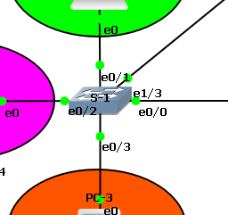 Hampir sama dengan S-1, namun hanya akan ada trunk port pada interface ethernet0/0